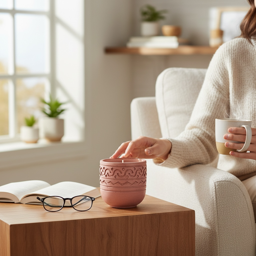 Each candle in this collection was created as an anchor for calm and reflection. From Forest Calm to Rosewood and Morning Light, every blend is hand poured in a concrete vessel I craft myself. Each scent was designed to mark quiet moments. A slow morning, an evening exhale, or a small act of self-care that brings you back to center.